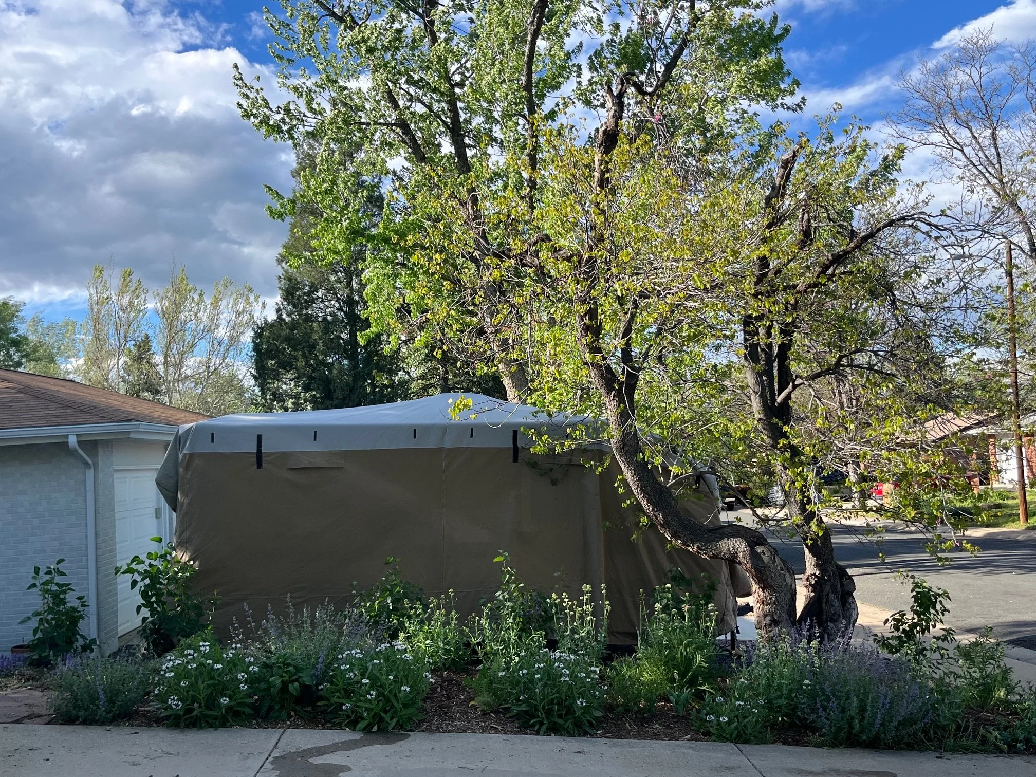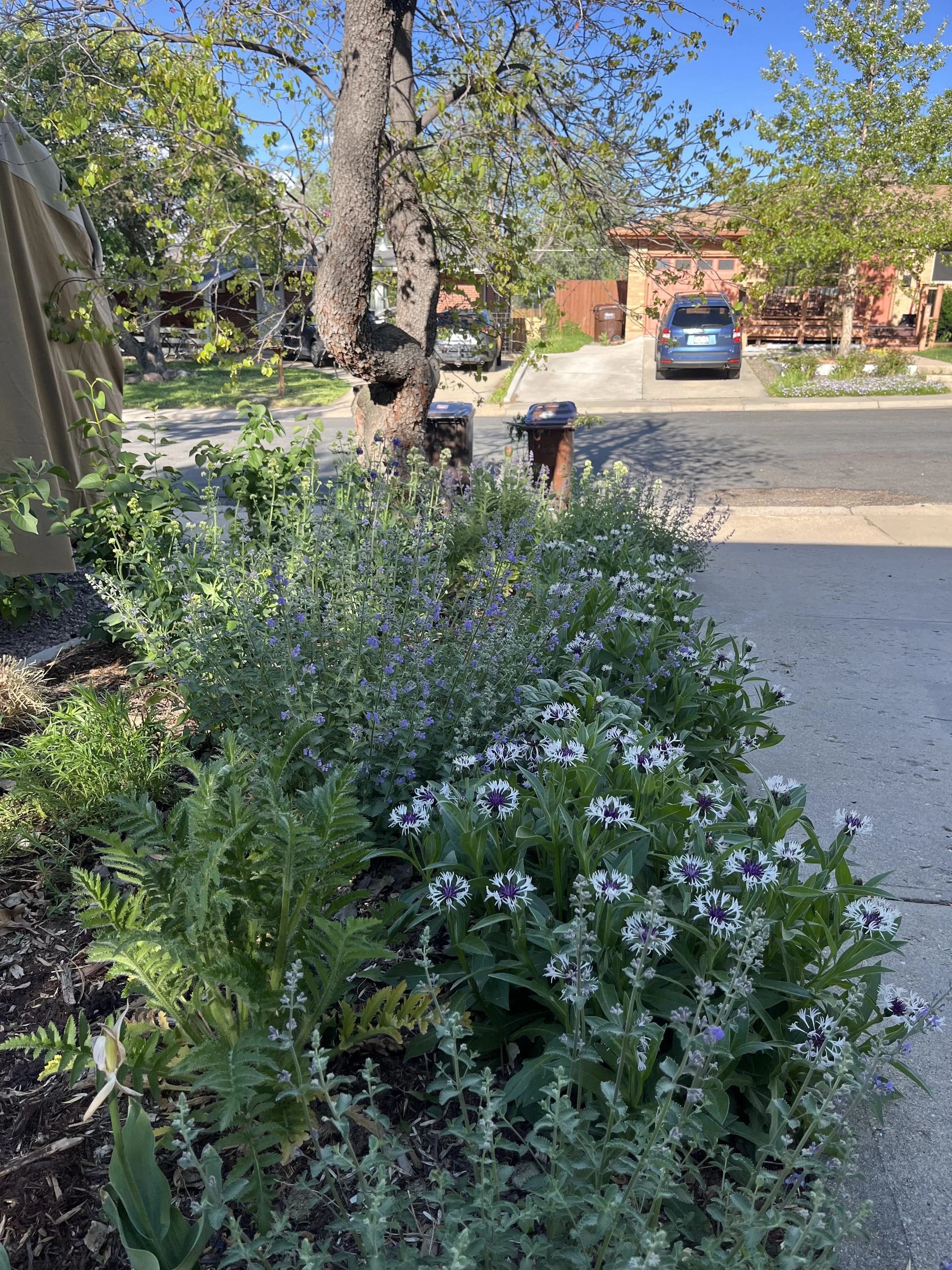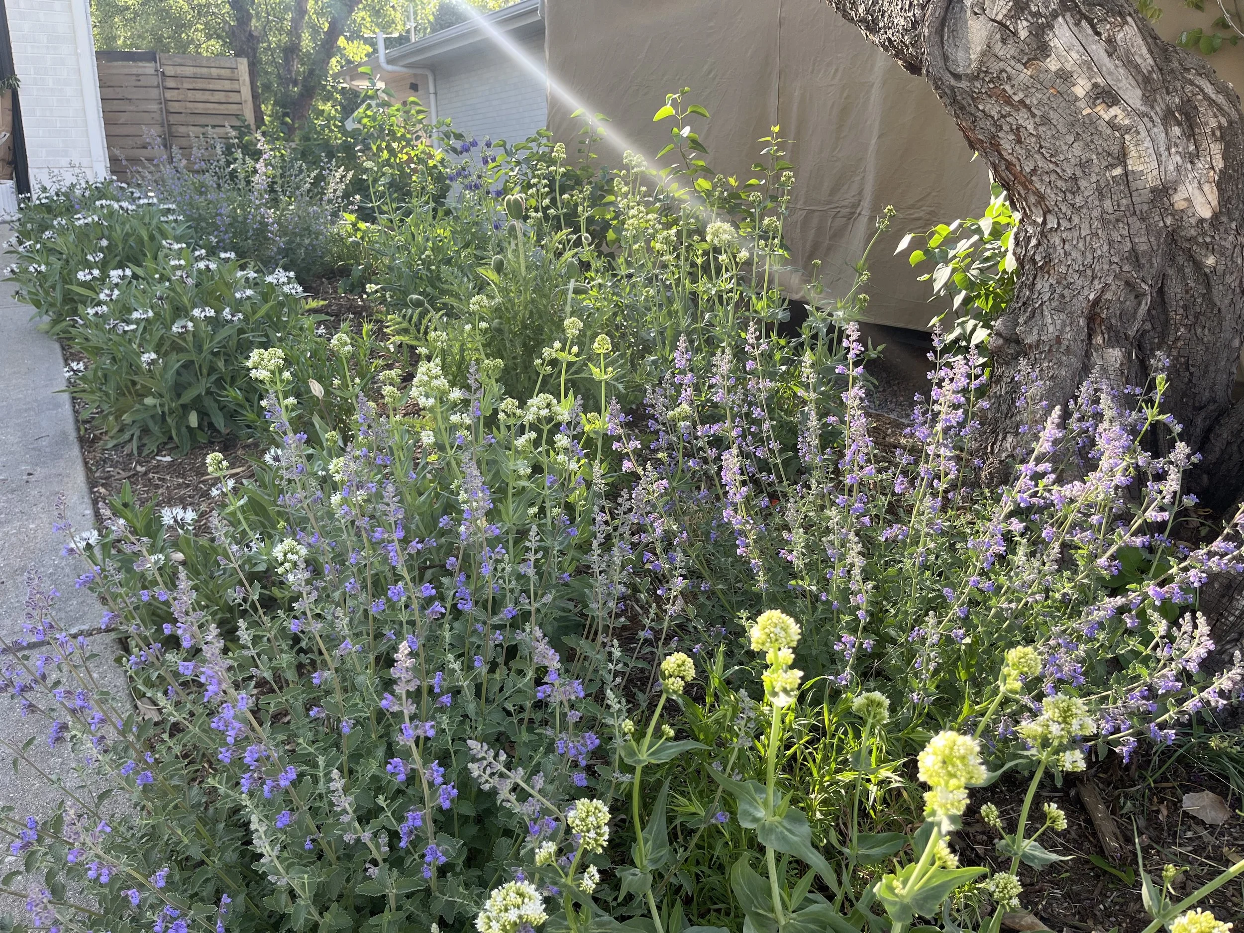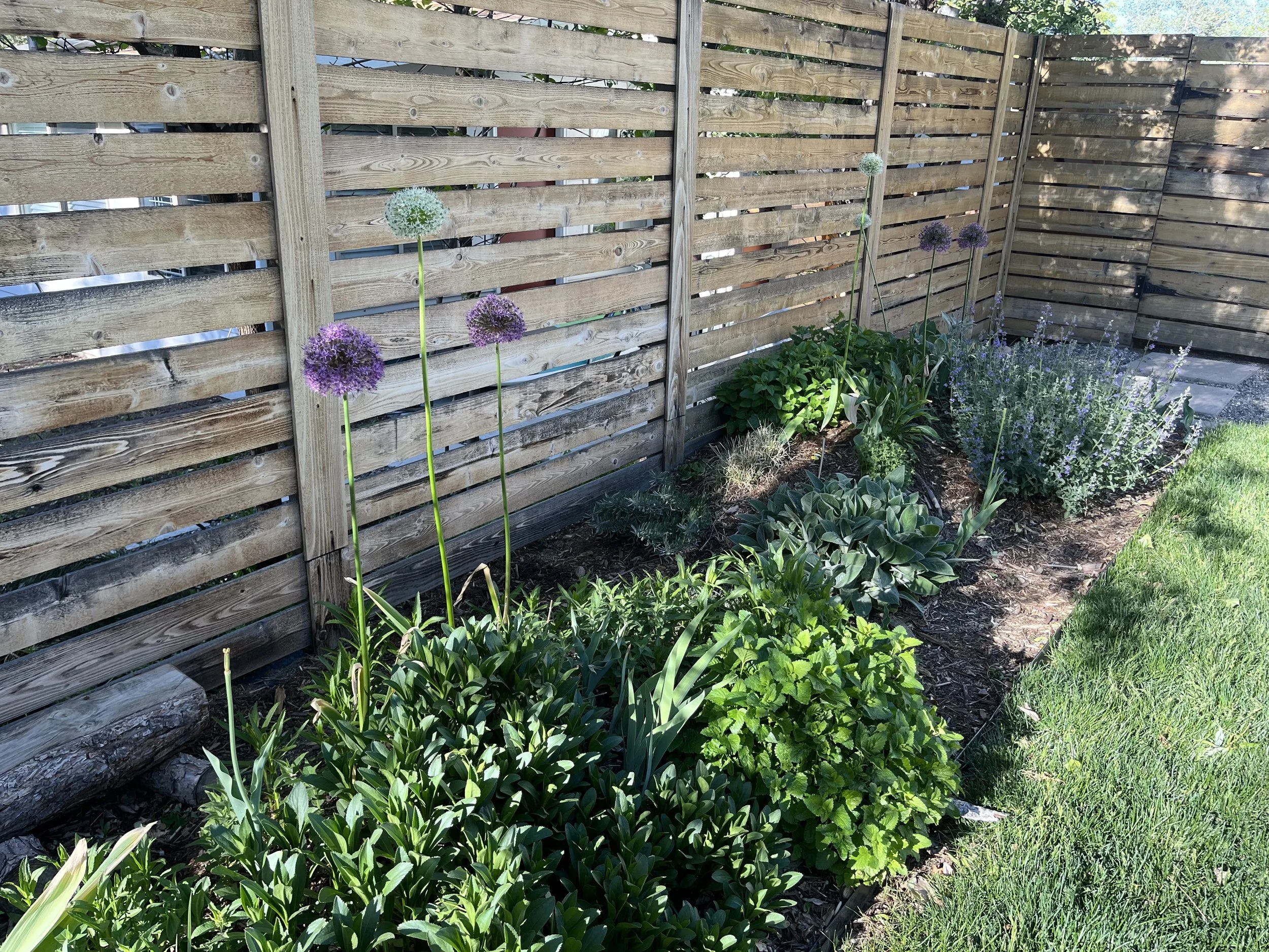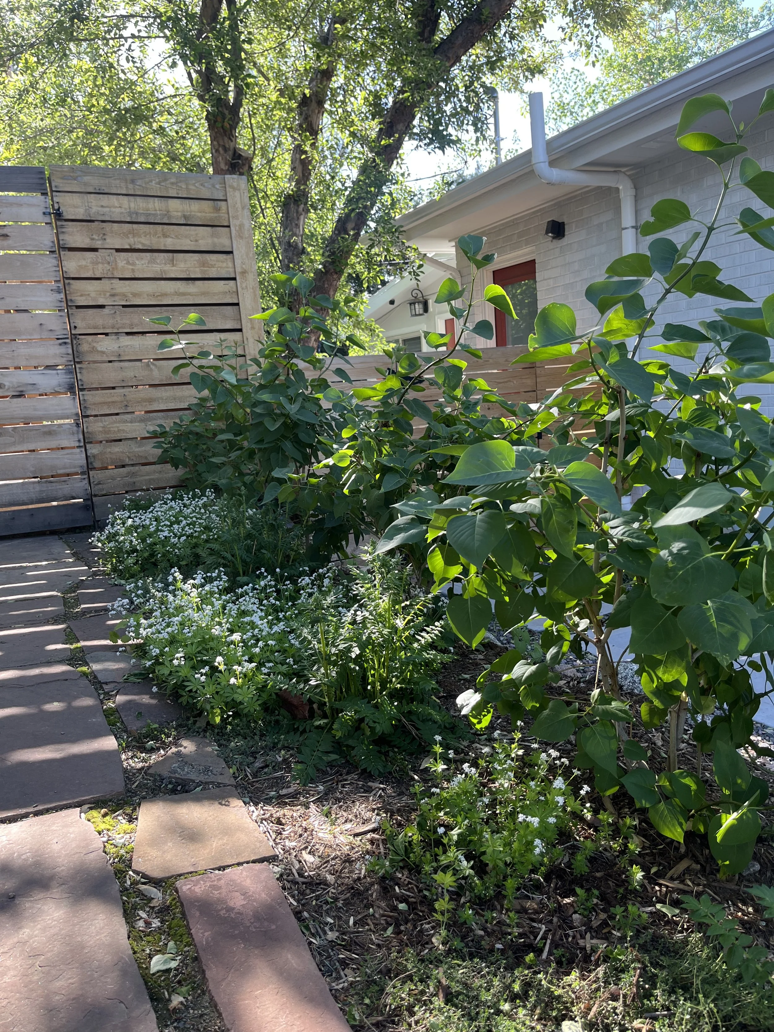 Mature textures & seasonal transitions — As the garden has matured, the ground-cover mosaics beneath the lilacs have become a stunning spring display, while Muhly grasses create a sweeping, ethereal effect in the fall. Pops of irises and ornamental alliums add sculptural interest, and pollinators—including bees and butterflies—thrive throughout the seasons.